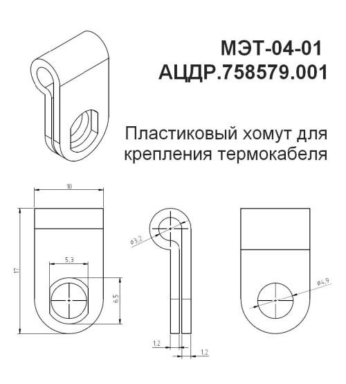МЭТ-04-01 (10 шт.) Пластиковый хомут для крепления термокабеля - Пластиковый хомут для крепления термокабеля, габ.размер 10х17 мм