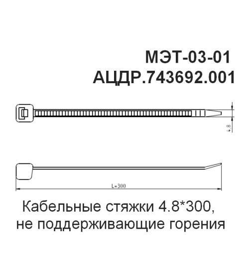 МЭТ-03-01 (10 шт.) Кабельные стяжки 4.8х300, не поддерживающие горения - Кабельные стяжки 4.8х300, не поддерживающая горения