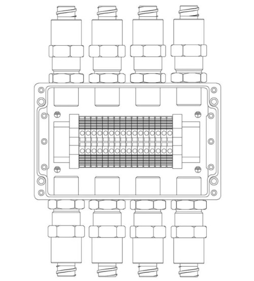 КВМК 1603 Коробка коммутационная взрывозащищенная Компания СМД - Коробка коммутационная взрывозащищенная 1ExeIIBT5Gb, клеммник 0.5...4 мм.кв. (I=25А) -16 шт, УХЛ1, IP67, t-раб.-60...+85°С, 100х160х81 мм. Корпус из алюминиевого сплава, универсальный кабельный ввод: под кабель 6...12 мм в металлорукаве 15 мм - 8 шт